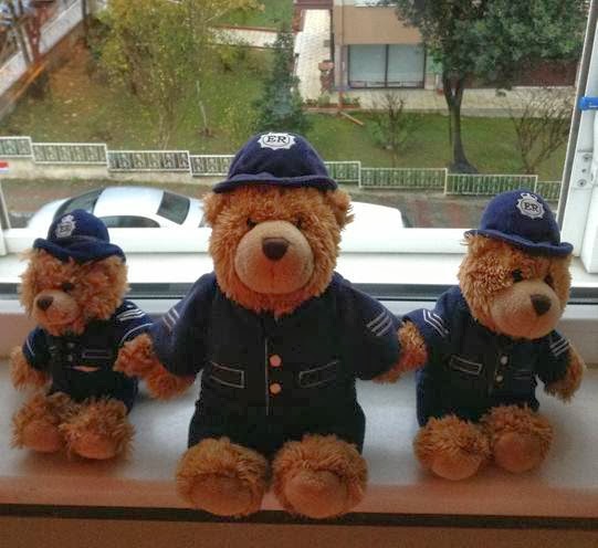 Introducing you to Baki Zekai Jr., Sekuri and Baki Zekai (fltr). These wonderful Keel Toys Policemen Bears have easily adapted to life in Istanbul (complete gentlemen compared to their colleagues in Taksim Square) and make us smile every day.